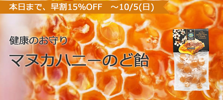 本日最終日「早割15%OFF」10/5(日)まで 小さな安心をくれる、マヌカハニーのど飴