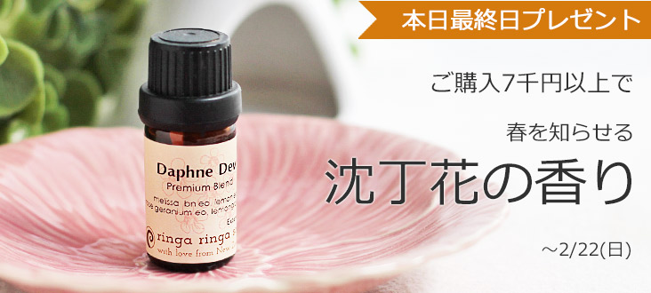 本日2/22(日)まで、ご購入7千円以上でプレゼント 春を連れてくる「Daphne Dew精油」