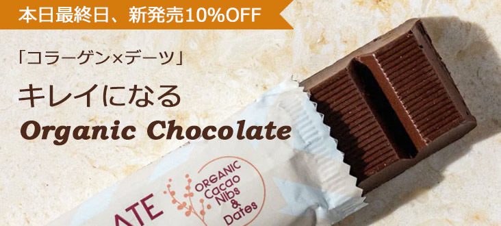 本日まで「新発売10%OFF」 ハリの源コラーゲン x デーツの食物繊維 キレイになるオーガニックチョコレート。