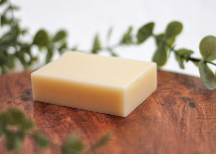 「原材料」オリーブオイルエキストラバージン、RSPO認定パームオイル、ココナツオイル、オーガニックカレンデュラオイル、精製水、水酸化ナトリウム、マンダリン精油、プチグレン精油、イランイラン精油、プラムオイル