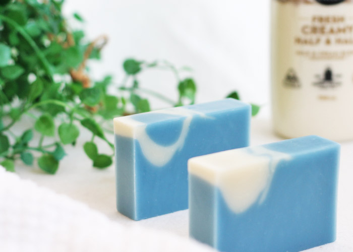 「原材料」オリーブオイルエキストラバージン、RSPO認定パームオイル、ココナツオイル、オリーブスクワラン、乳液ベース、精製水、水酸化ナトリウム、Puhoi Valleyミルク&クリーム、ジャスミンエキス、ウルトラマリンブルー、ジャスミンBN精油、オレンジスイート精油、グレープフルーツ精油、メイチャン精油
