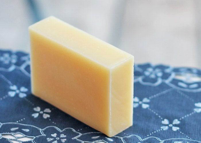 「原材料」オリーブオイルエキストラバージン、RSPO認定パームオイル、ココナツオイル、オーガニックカレンデュラオイル、精製水、水酸化ナトリウム、イランイラン精油、 ローズゼラニウム精油、月見草オイル