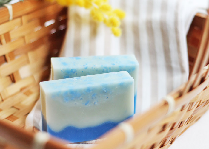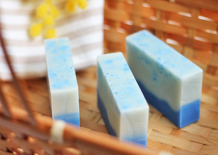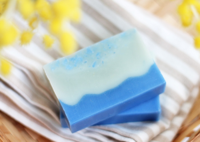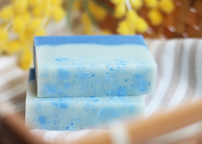 オリーブオイルエキストラバージン、パームオイル、ココナツオイル、精製水、水酸化ナトリウム、シーウィードパウダー、NZシーソルト、スピルリナ、海藻コラーゲン、ウルトラマリンブルー、カモミールBN精油、パチュリー精油、ベルガモットFCF精油、レモン精油