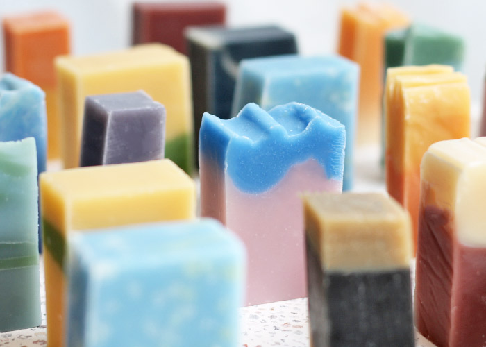 そこでどうしても出てしまうのが、制作途中での欠け、端っこ、試作品、デザインの変更などで、日の目を見ることのない石けんたちです。