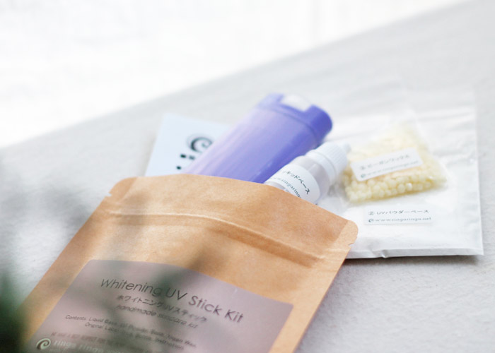美白のビタミンC誘導体や保湿のココナツオイルを加えます。