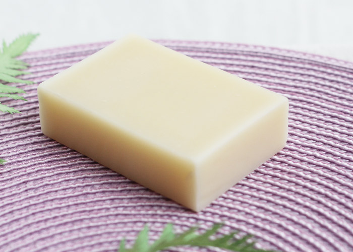 「原材料」オリーブオイルエキストラバージン、RSPO認定パームオイル、ココナツオイル、オーガニックカレンデュラオイル、精製水、水酸化ナトリウム、サンダルウッド精油、オレンジスイート精油、アボカドオイル