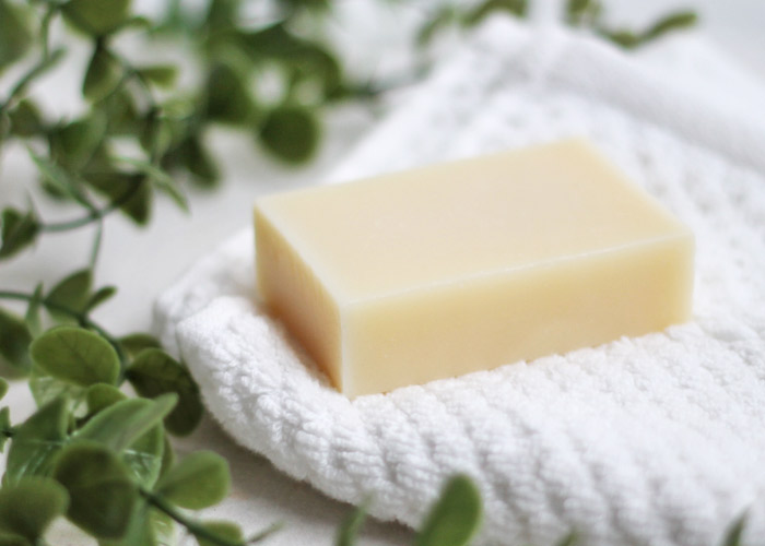 ・原材料の水酸化ナトリウム(苛性ソーダ)は、石けん作りにかかせない素材で、油脂と鹸化して石けんになると成分は残りません。