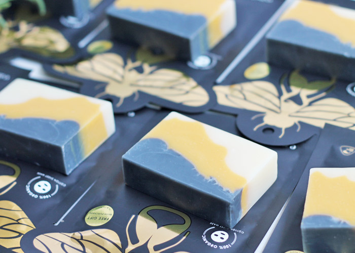この石けんには、ハリと透明感を与えてくれるビーベノムを、これまでの2倍、ぎりぎりの濃度まで加えました。