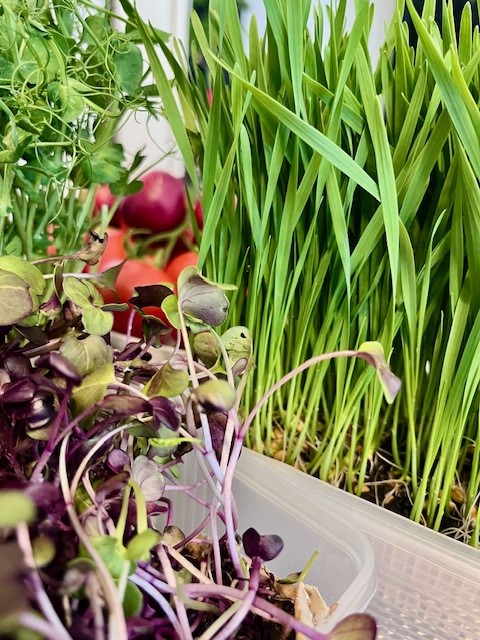 でも水耕栽培なら少しぐらいはキッチンの台でなんとかなると、野菜売りのおじさんに色々教えてもらい、スプラウとやウィートグラスなどをマーケットで買ってきました~